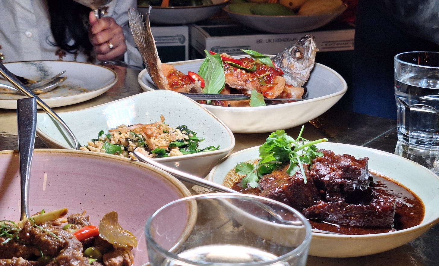 It’s why I’ve been invited to this stunning celebratory dinner, where we’re feted with drinks (highlights include a tart hibiscus margarita and a fresh fig martini) and appetisers, all drawing from the cuisine of southern Thailand.
